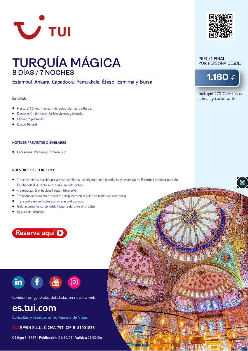 Turquía Mágica. 8 días / 7 noches. Salidas desde MAD desde 1.160 €
