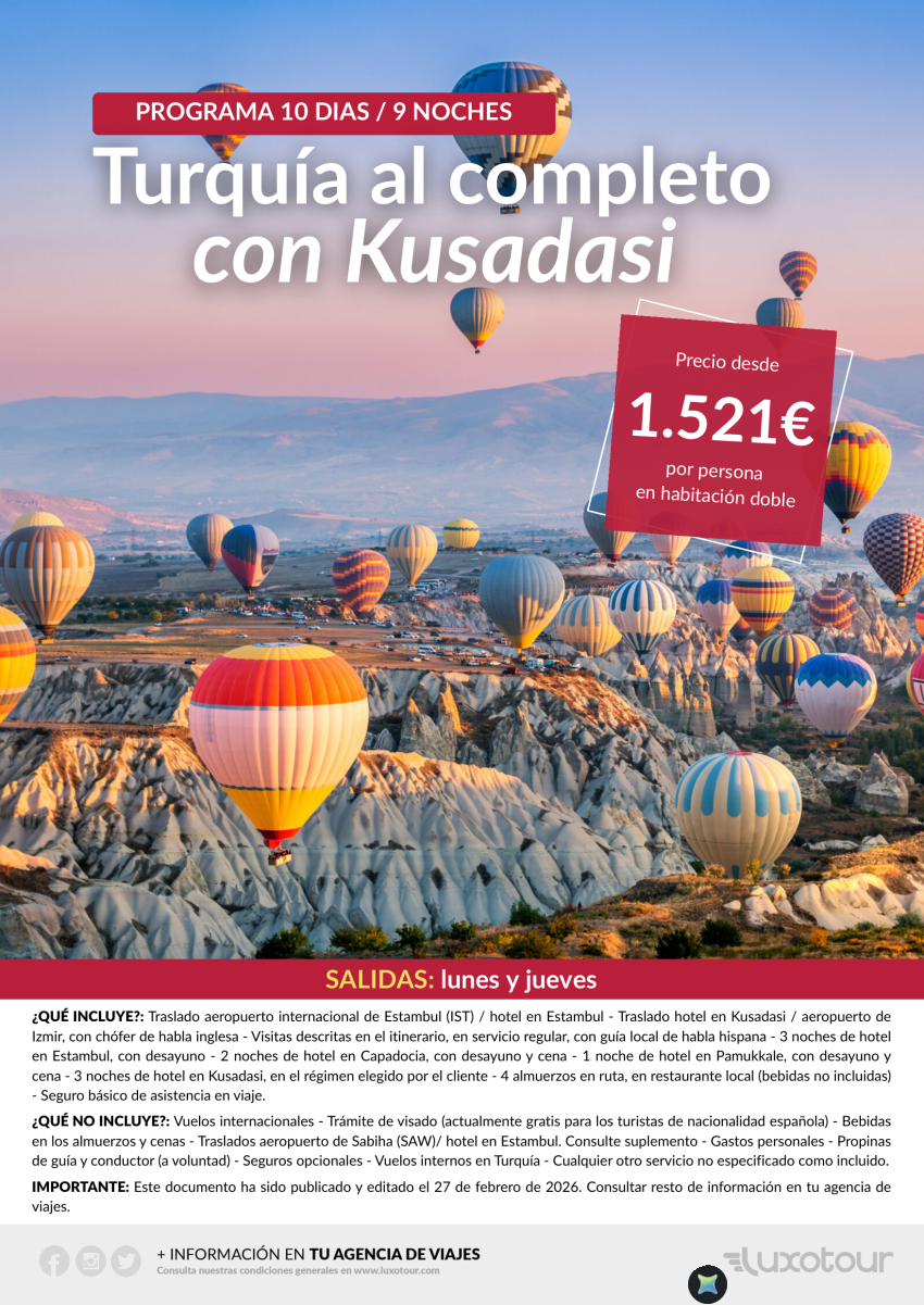 Turquía al completo con playas de Kusadasi (10 días / 9 noches) desde 1.521€