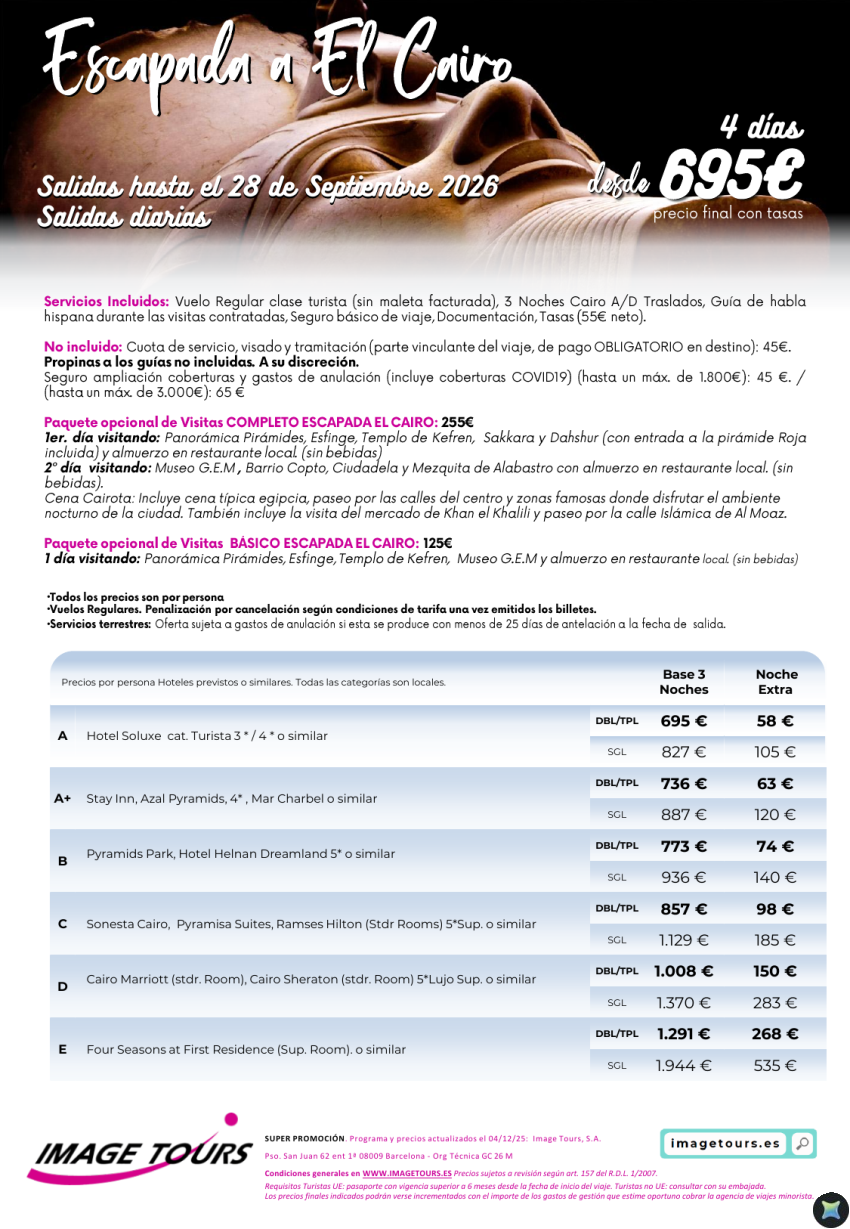 Escapada a El Cairo, 4 días de estancia con visitas opcionales desde 695€. ¡Visita el nuevo MUSEO Egipcio!