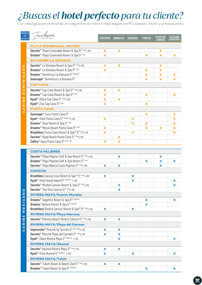 Guía 2026 para recomendar el resort Hyatt ideal según cada tipo de cliente